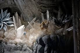 umrandet von großen, aufrecht stehenden, sechseckigen Bergkristallen. Ich eile